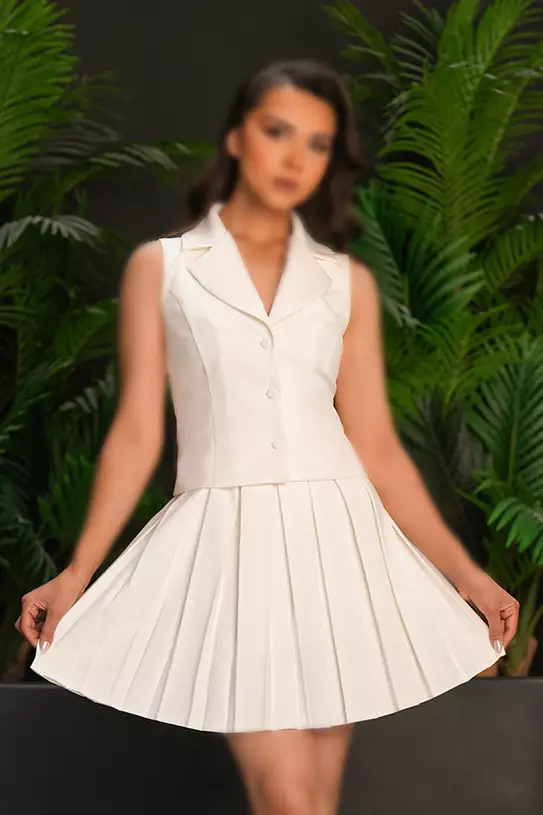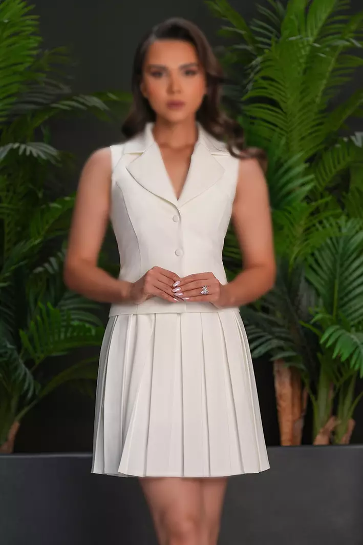 ست وست و دامن سفيد مدل Piilii كوتاه