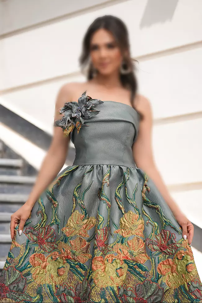 پيراهن ژاكارد سبز مدل فلور