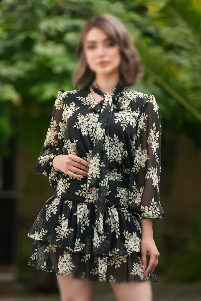 پيراهن حرير طرح ابرنگی مشکی